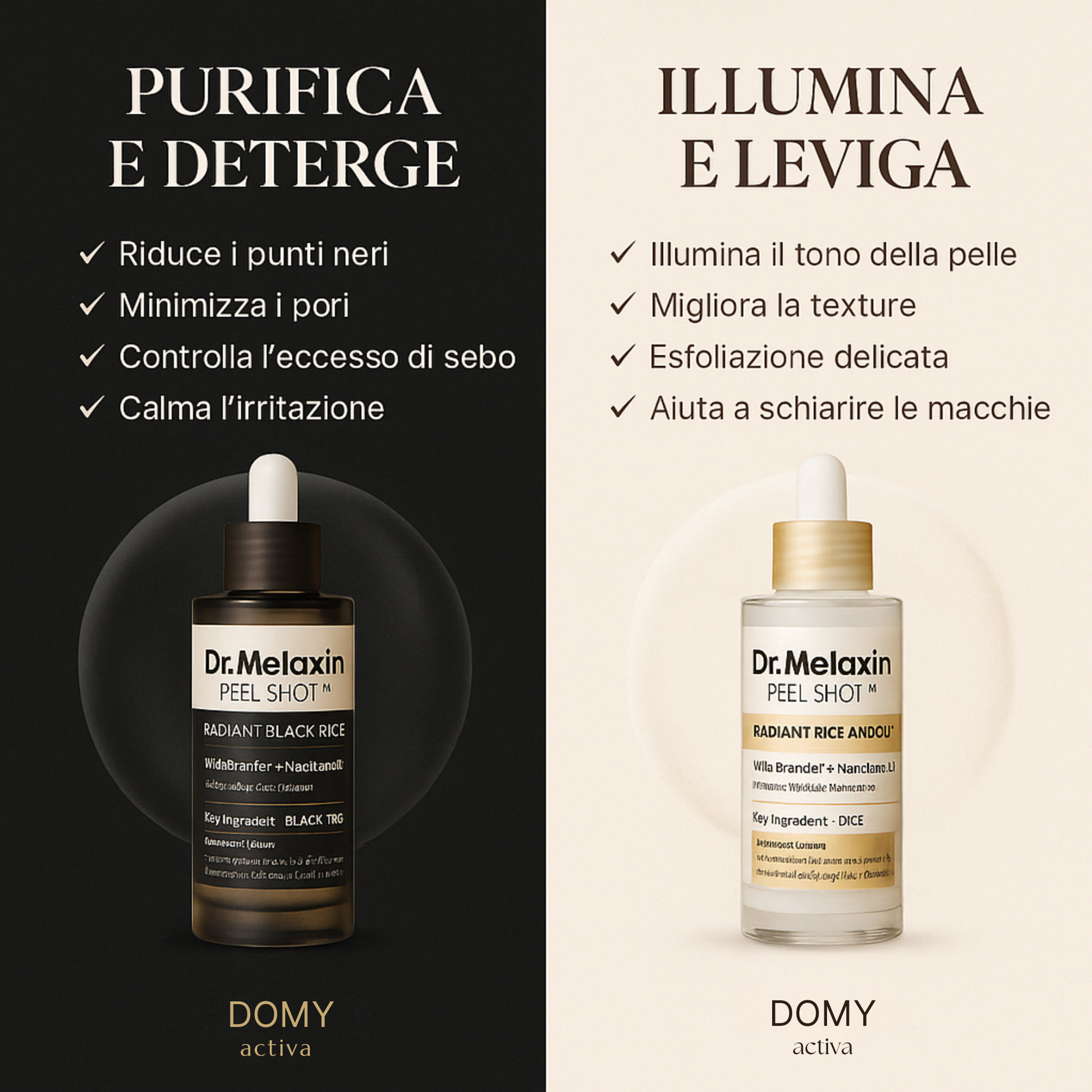 💡 Consiglio Pro: Non usare mai entrambe le ampolle contemporaneamente. Lascia che la pelle assorba completamente la formula di Bianco prima di applicare altri prodotti, e dopo i trattamenti con Nero utilizza sempre un siero idratante per mantenere l'equilibrio di idratazione.