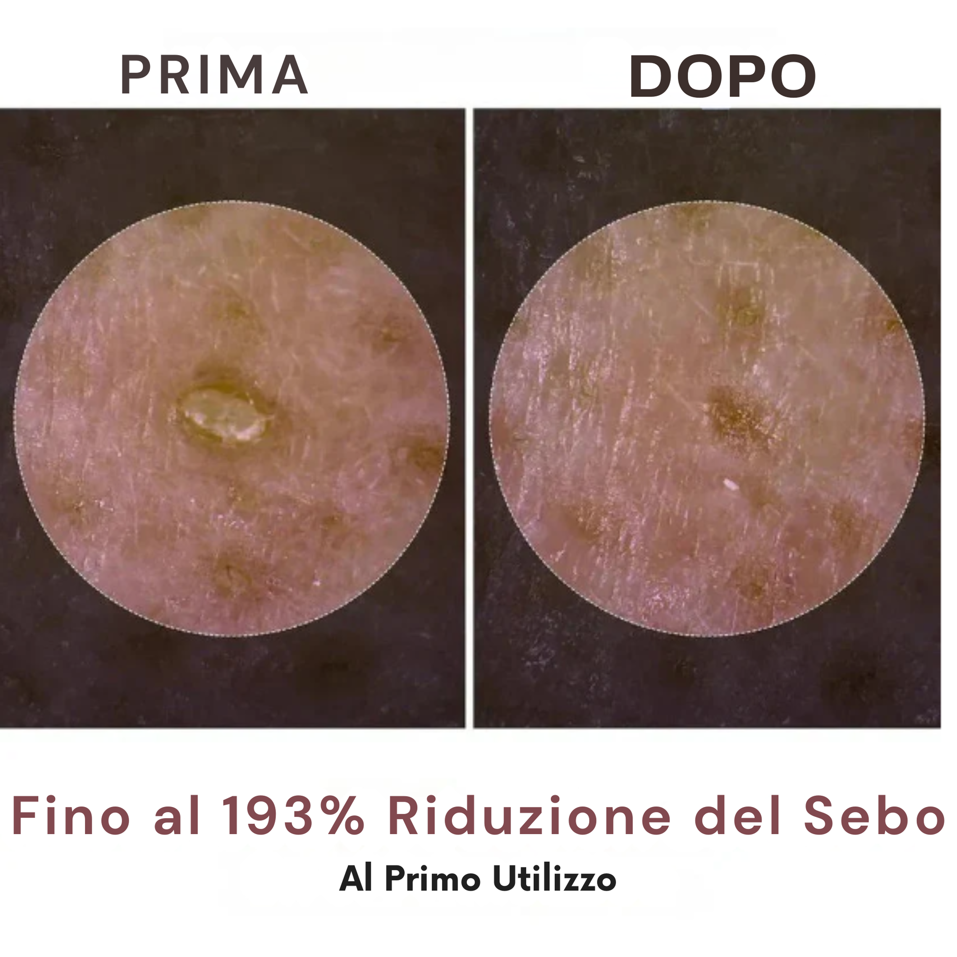 Qui succede la magia: riduzione del 92,7% dei punti neri e pori visibilmente più piccoli. Anche chi ti sta intorno inizia a notare la differenza.